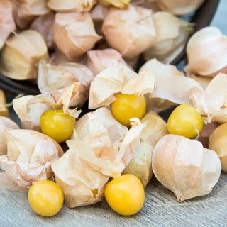 One of the tastiest ground cherries we've grown! Small yellow fruits have a popping crisp texture and a sweet-tart flavor with hints of citrus and pineapple. They're great for snacking, chopped up into salsas and cooked into jams, preserves and pie fillings. Aunt Molly's is an extremely productive, heirloom variety that has been a favorite among Pennsylvania Dutch growers since the 1830s. The fruits are covered in a papery husk and drop to the ground when ripe. The harvested fruits hold up in the husk for 3-4 weeks. 75-90 DAYS.