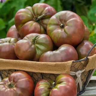 Cherokee Carbon Tomato is a cross between Cherokee Purple and Carbon Tomatoes. This cross between two beloved heirlooms produces gorgeous purple beefsteak tomatoes with a wonderfully complex flavor. A variety of Heirloom Marriage Tomatoes, our award-winning Cherokee Purple Tomato Hybrid offers an outstanding heirloom flavor. Along with higher yields and early maturity, these Cherokee Carbon Tomato seeds produce fruits with less cracking and blemishing. These 10 - 12 oz. beefsteak fruits mature between 75 and 80 days and once harvested, they're an excellent addition to tomato sandwiches. This tomato was the 2005 "Heirloom Garden Show" best-tasting tomato award winner and is one of our favorites, too. Expect these indeterminate plants to grow between 5-7 ft. tall and an average of 18 inches in width. For best results, be sure to provide full sun exposure and a sturdy support for your Cherokee Tomatoes, using stakes and caging.