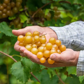 Oh My! Seedless grapes will change the way you think about and eat, muscadines. Bite into these perfectly round, golden fruits and experience an explosion of juicy sweetness and rich, aromatic muscadine flavor. You can savor the flavor and the experience without worrying about spitting out seeds or skins. Oh My! is the first muscadine that reliably yields full-sized, bronze-colored seedless grapes with tender skins. And, it's productive too! Each vine yields 40-plus pounds of fruit.