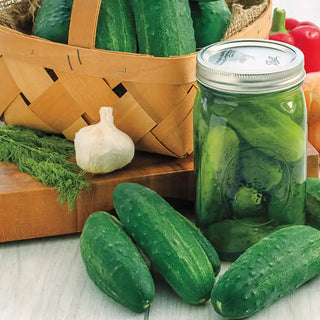 If you're planning on making pickles, Gurney's recommends growing a pickling cucumber—ones that are sweet, with a nice crunch and a small seed cavity. Pickling cucumbers are usually short and blocky with thin skins whereas slicing cucumbers are longer and bred for fresh eating. When selecting pickling cucumber varieties for your garden, select cucumber varieties that produce crisp, sweet fruits and also exhibit good disease resistance and produce high yields.